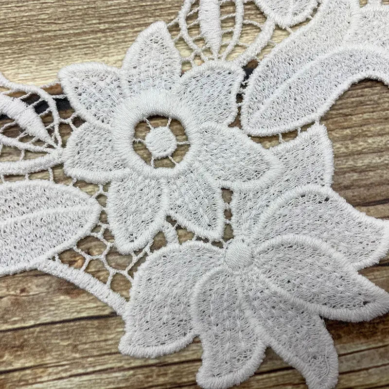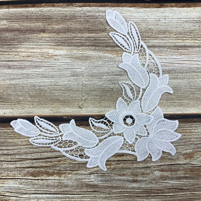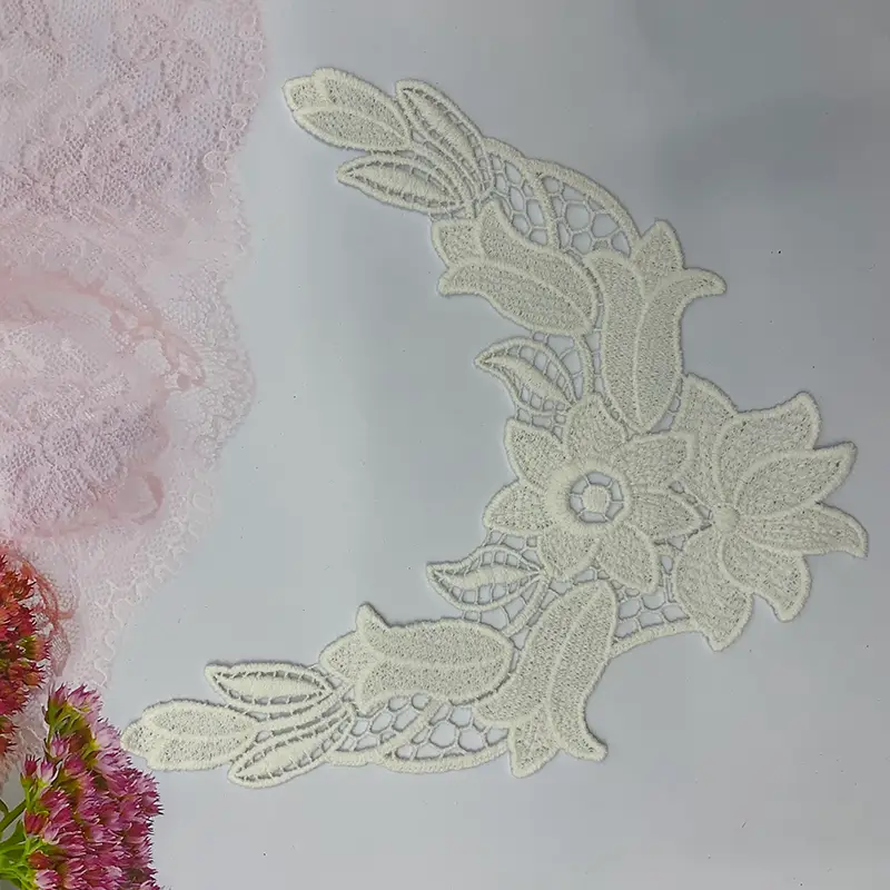 Factory Direct White and Natural Floral Cotton Guipure Collar Applique for Dress.