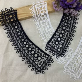 Fashion Design White Floral Design Polyester Guipure Collar Applique for Dress.