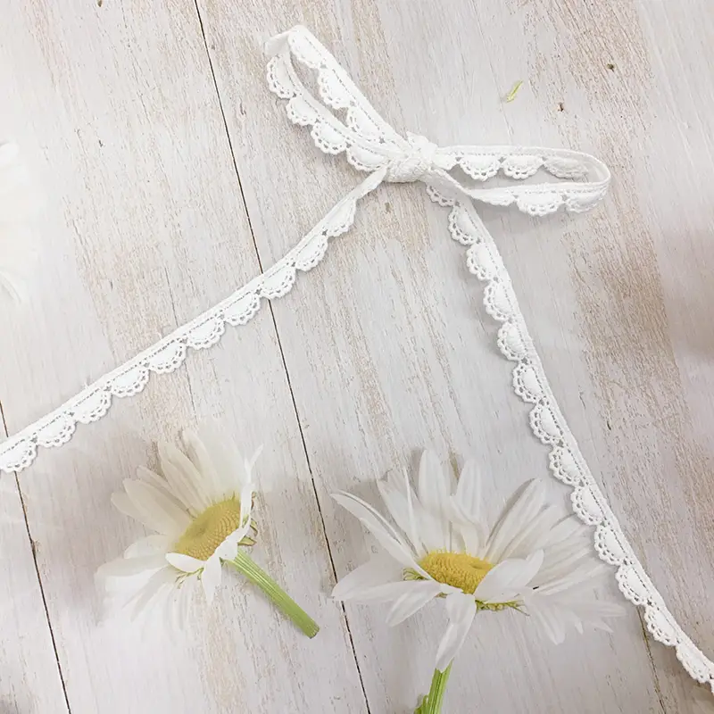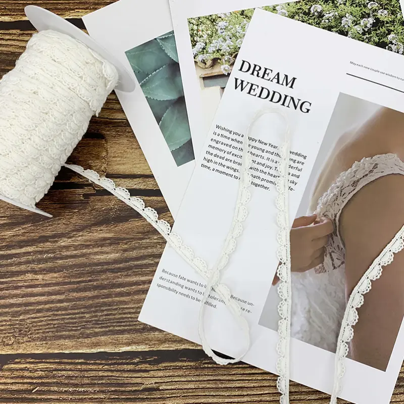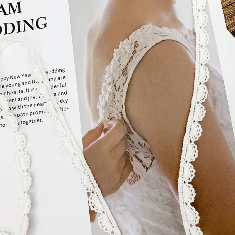 Perfectly suited for use in bridal wear, summer dresses, blouses, and children’s apparel, this lace trim adds a subtle yet elegant detail. Additionally, it can be applied to fashion accessories such as headbands, scarves, and handbags. In home décor, it serves beautifully as a decorative edging for curtains, pillowcases, tablecloths, and handmade crafts, infusing any space with a touch of timeless charm.