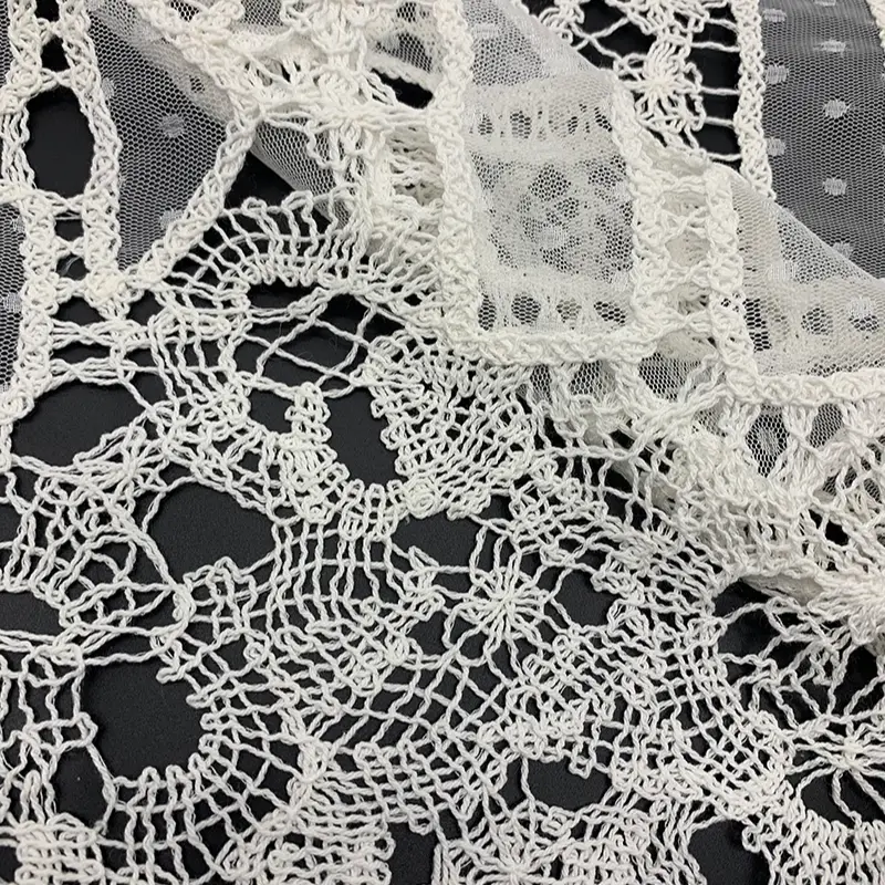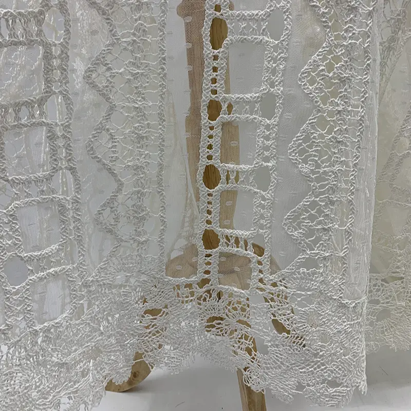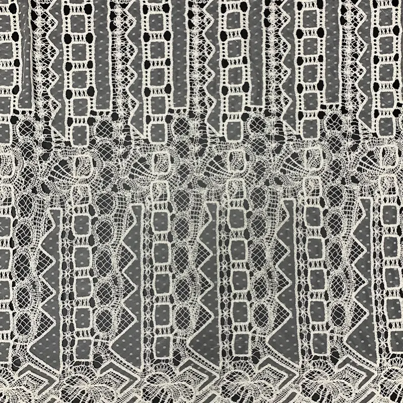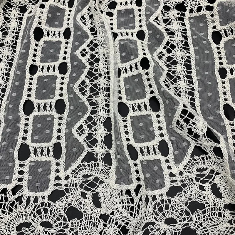 Hot Design Ivory White Polka-Dot Lace with Cotton Cord Thread Laser Cut Embroidery Lace Fabric.