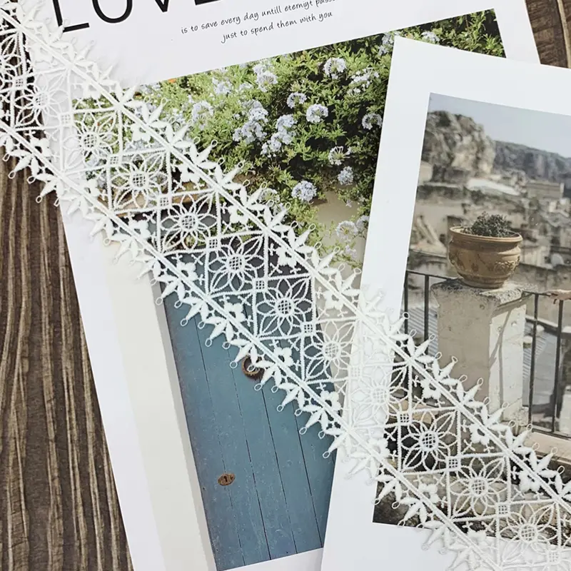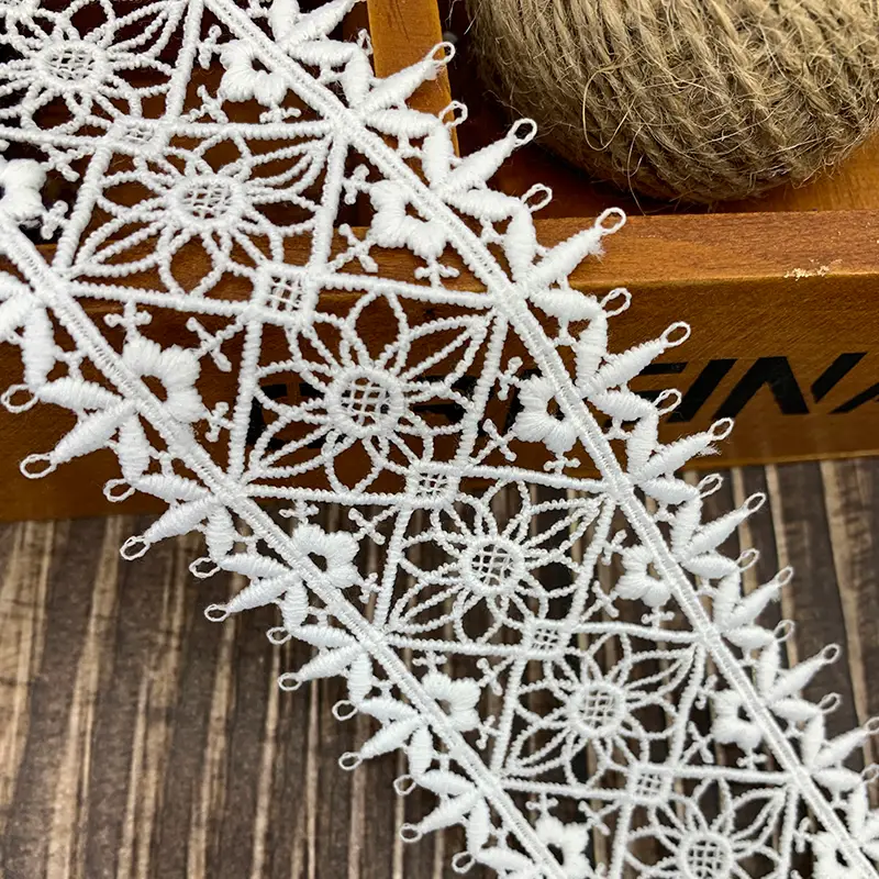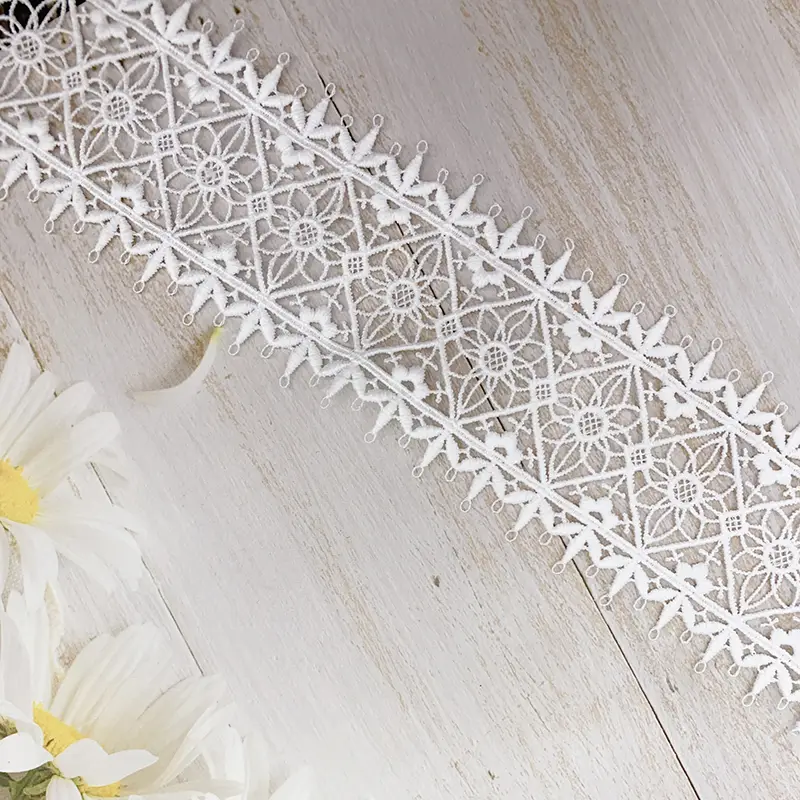 Factory Direct White Geometric Design Polyester Guipure Lace Trim for Garment and Hometextile Accessories.
