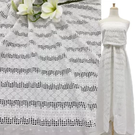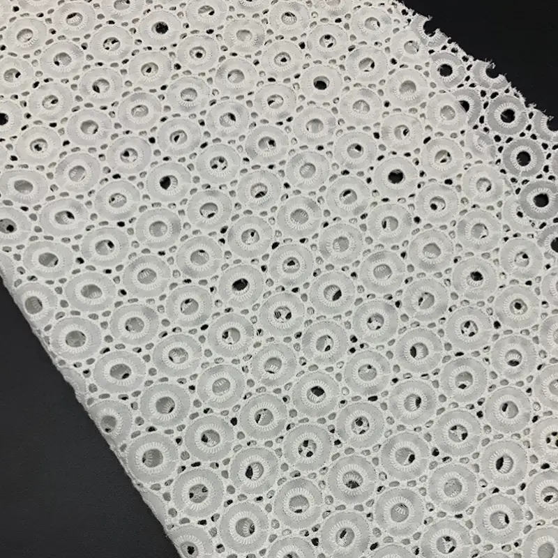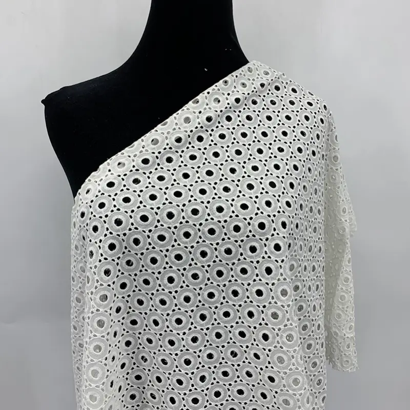 Hot Sale Ivory White Floral Cotton Eyelet Cotton Lace Fabric for Women Dress.