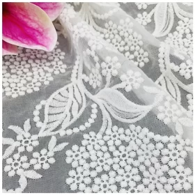 Hot Sale Ivory White Floral Cotton Eyelet Cotton Lace Fabric for Women Dress.