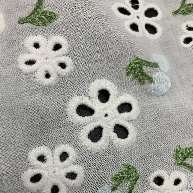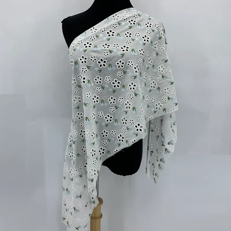 Fashion Style Multi-color Embroidered Floral Cotton Eyelet Cotton Lace Fabric with Scalloped Edges for Dress.