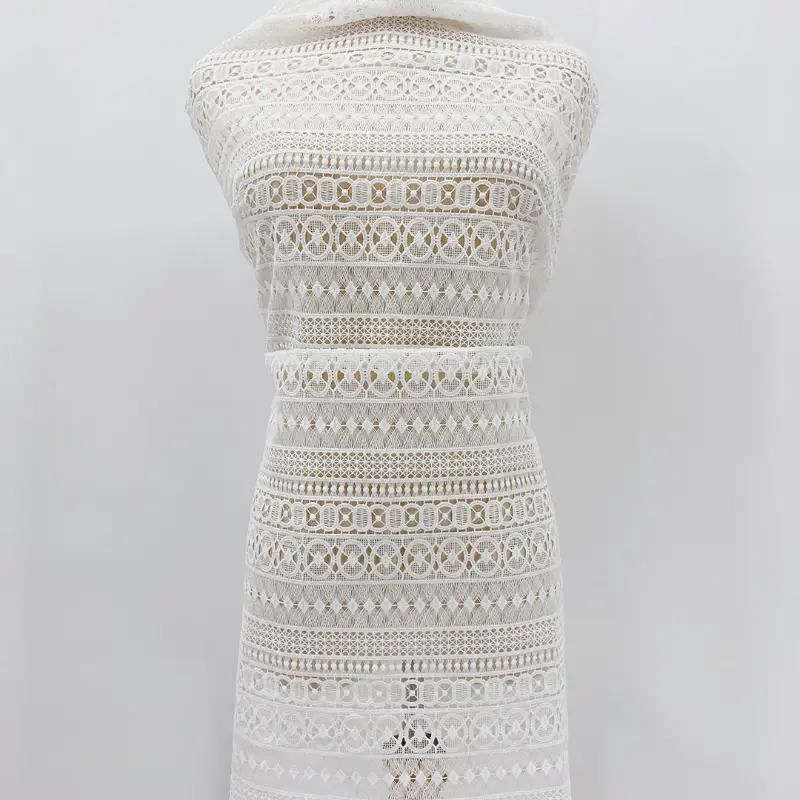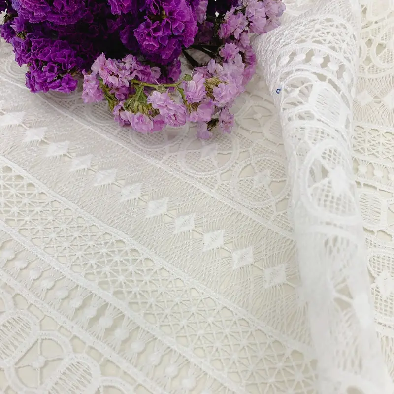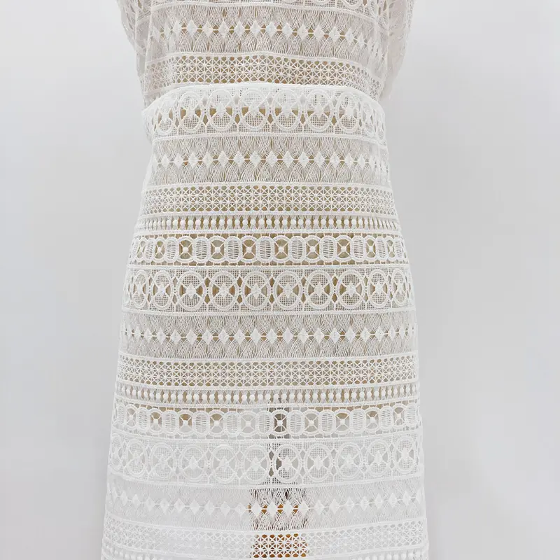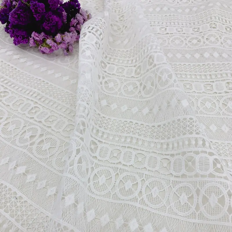 High Quality White Polyester Geometric Guipure Lace Fabric for Women and Girl Dress.