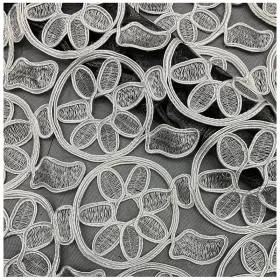 Factory Direct Black & Natural Two-Tone Cotton Cord Guipure Embroidered Lace Fabric.