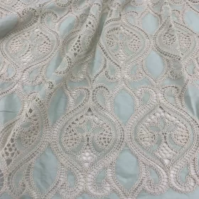With its structured body and slight drape, this fabric is perfect for statement garments that hold their shape while offering comfort and breathability. The water-soluble technique leaves a clean, lace-cut finish that gives each square refined definition, idea for making high-impact dresses and skirts, retro-inspired suits and jackets, statement tops and outerwear etc.