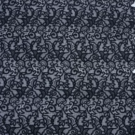 This striking fabric showcases a checkerboard pattern composed of alternating black blocks and natural-colored floral guipure lace squares. Each lace square is delicately embroidered with cotton thread, forming intricate floral motifs that add a handcrafted, textural charm. The bold black contrast enhances the visual impact, creating a modern-retro aesthetic.