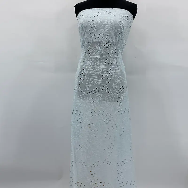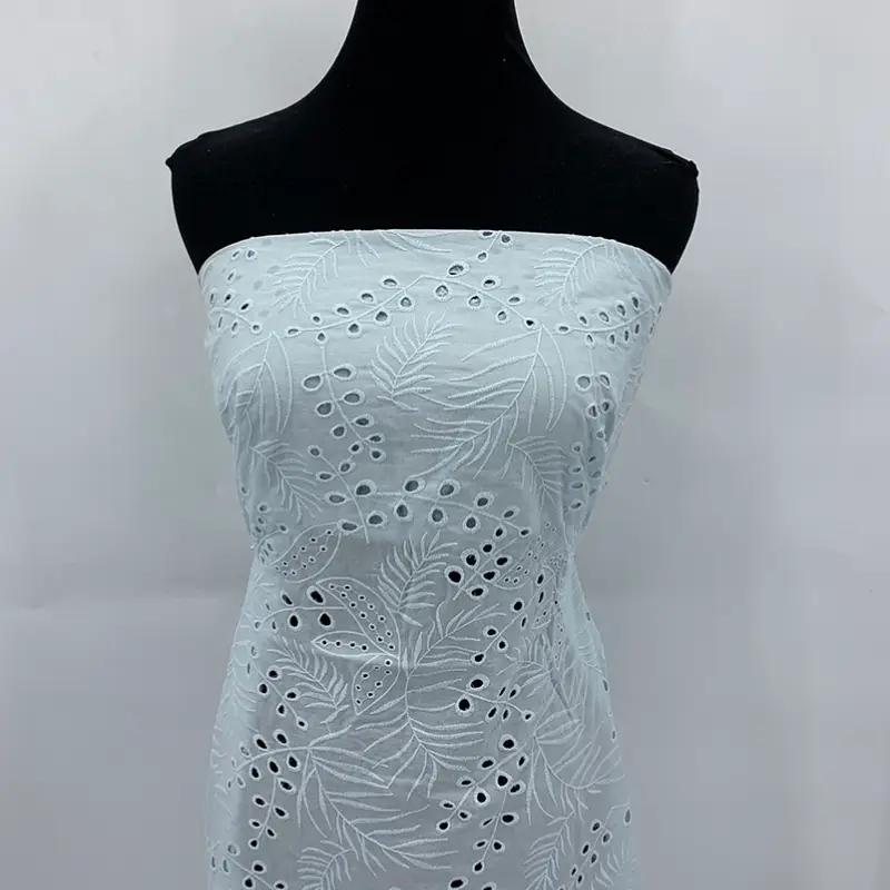 Manufacturer Direct Lt. Blue Leaf Pattern Cotton Eyelet Cotton Lace Fabric For Women Dress.