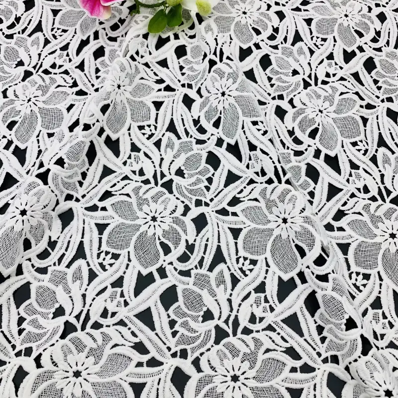 Hot Sale Ivory Floral Guipure Lace Fabric for Women Dress.