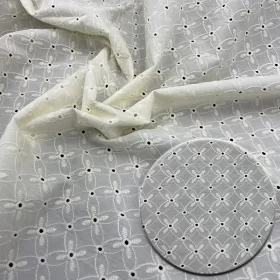 This fabric is a perfect choice for resort wear, occasion dresses, summer dresses or blouses. Its combination of lightness and ornate detailing lends itself especially well to ethereal gowns, feminine tunics, and sophisticated summer ensembles.