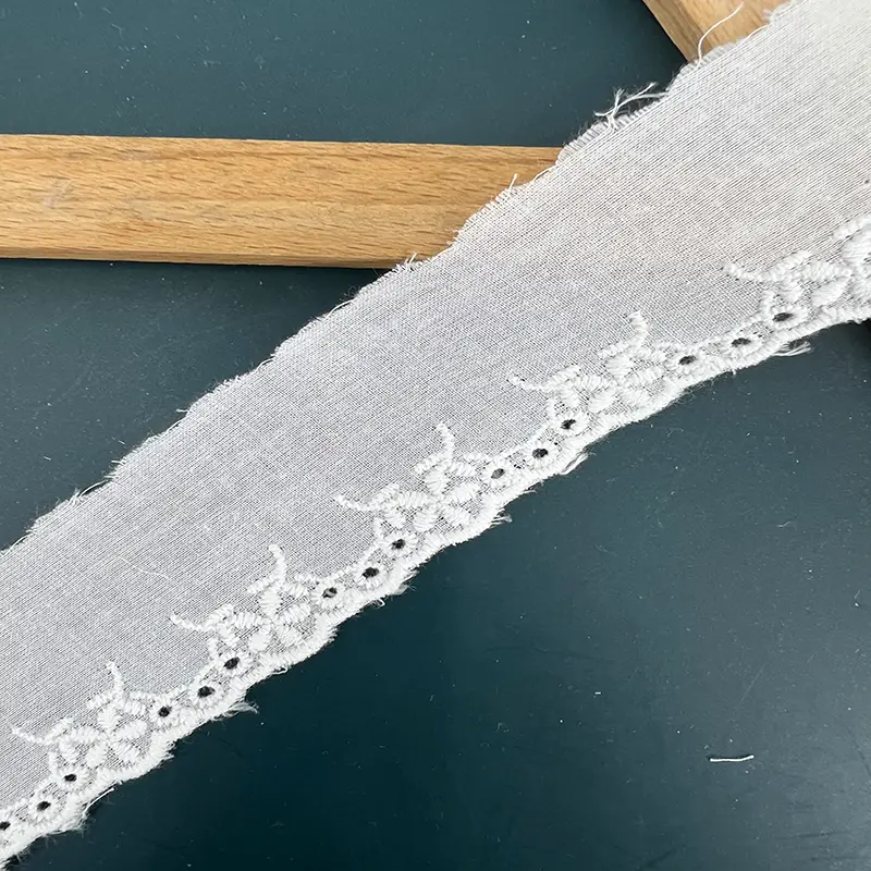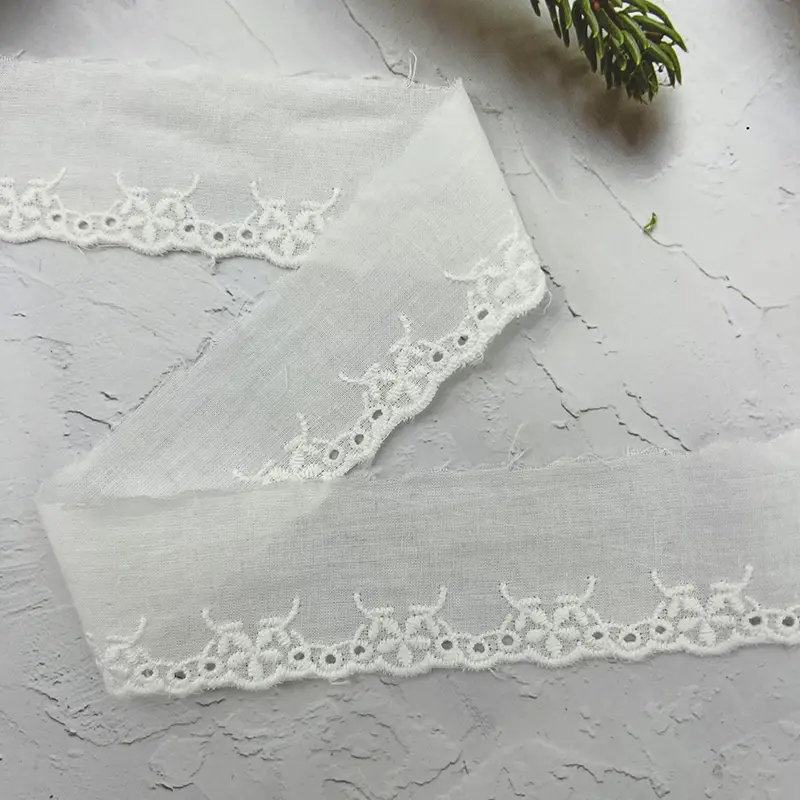 Hot Sale Ivory White Novelty Cotton Eyelet Lace Trim With Scalloped Edge for Garment Accessories.
