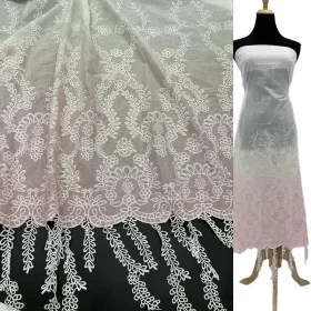 Crafted from premium cotton, this fabric offers a smooth, breathable texture with a soft hand feel. It has a light to moderate drape, allowing garments to flow naturally while maintaining enough structure for design versatility. The eyelet embroidery enhances the fabric’s dimensionality, making it both lightweight and airy — ideal for warm-weather wear.