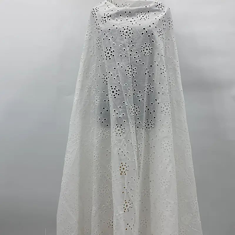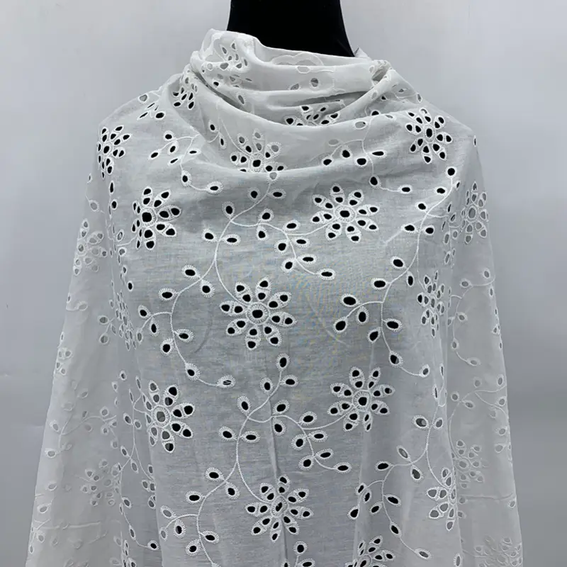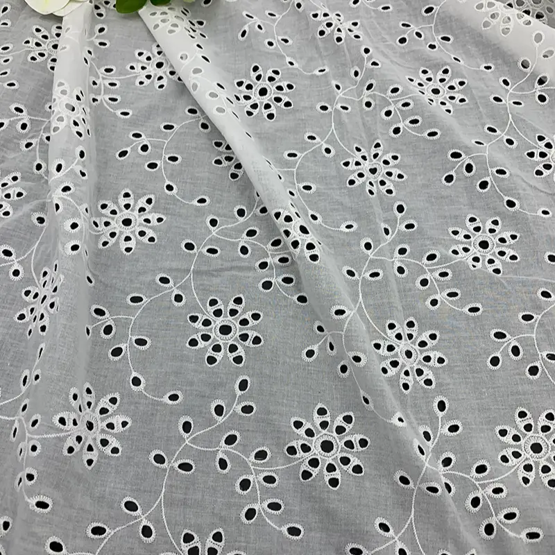 High Quality White Floral Cotton Eyelet Cotton Lace Fabric with Scalloped Edges for Dress.
