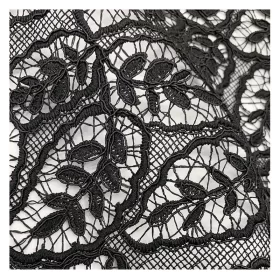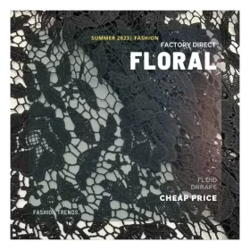 This polyester water-soluble embroidered lace fabric features intricate floral motifs with precise detailing. The delicate openwork combined with structured embroidery enhances the visual depth, offering a luxurious and elegant texture. The refined craftsmanship ensures a high-end finish suitable for premium garment production.