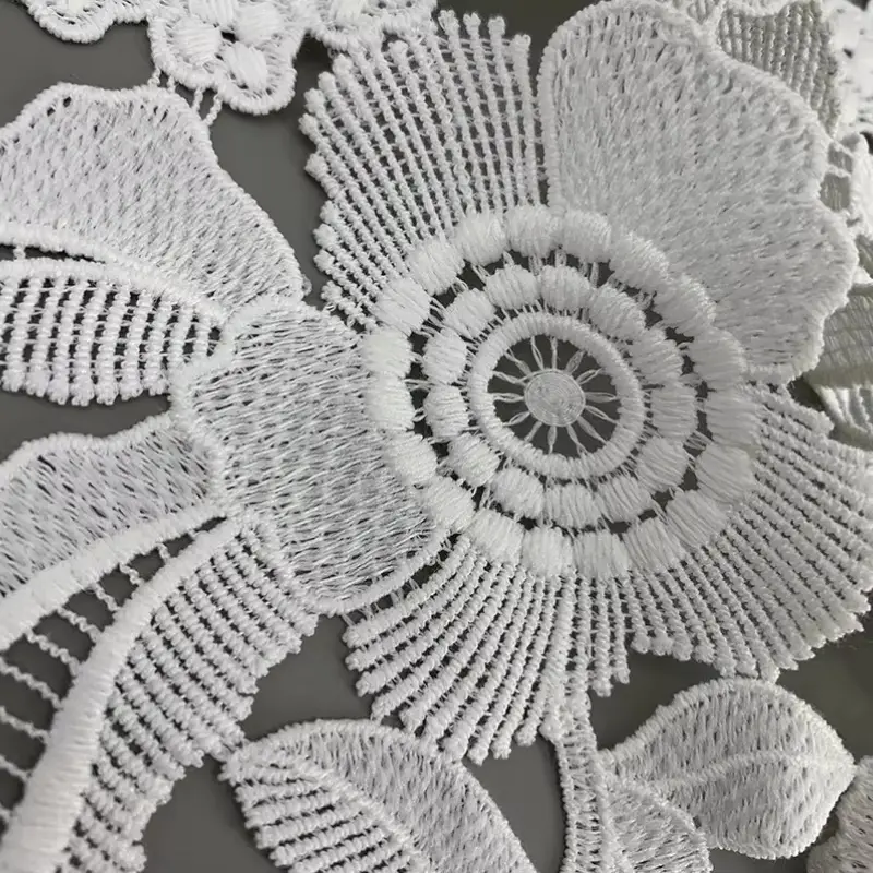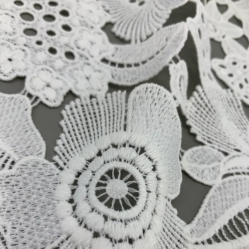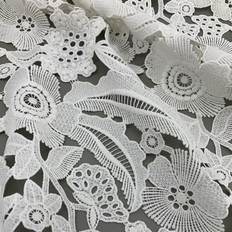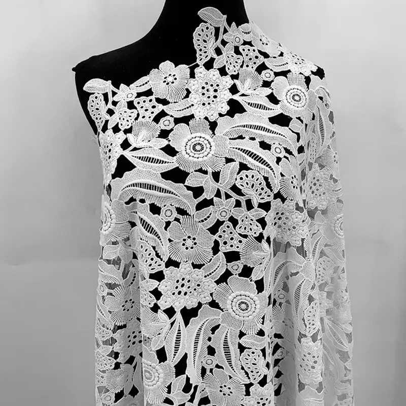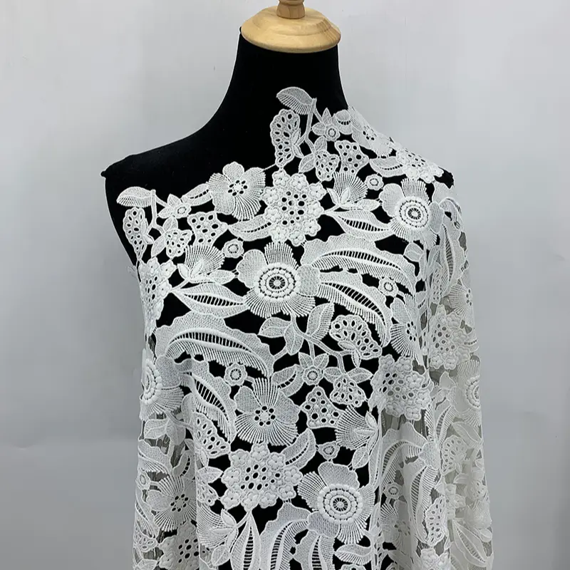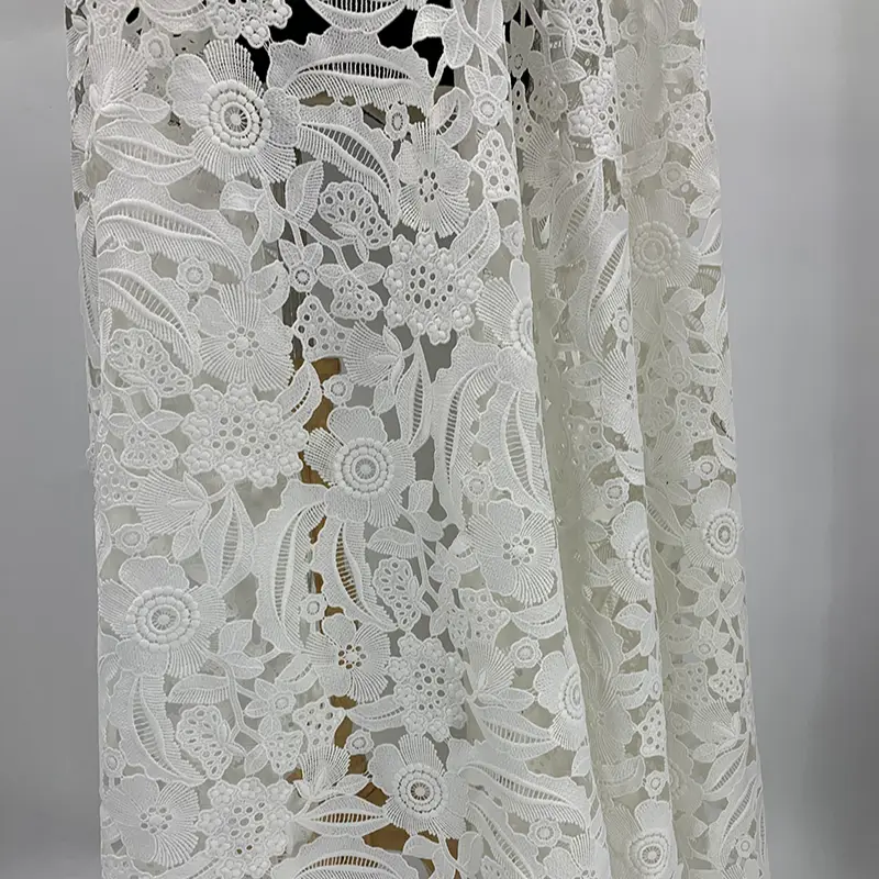 Factory Direct White Polyester Floral Guipure Lace Fabric for Women Dress.