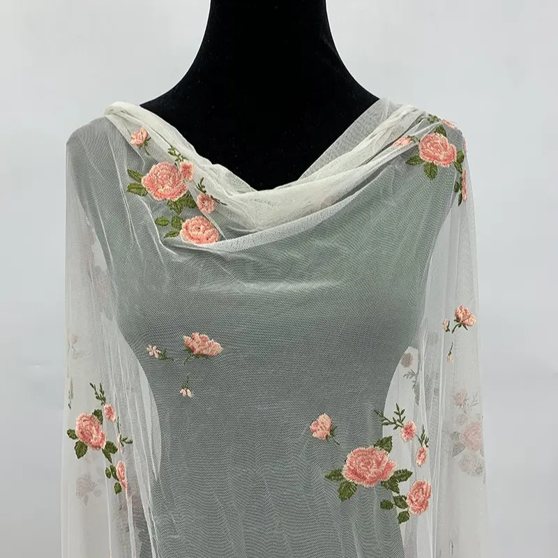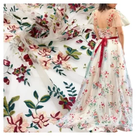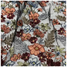 Ultra Lightweight Multi-colored Flower Embroidered Tulle Mesh Fabric.