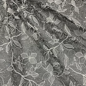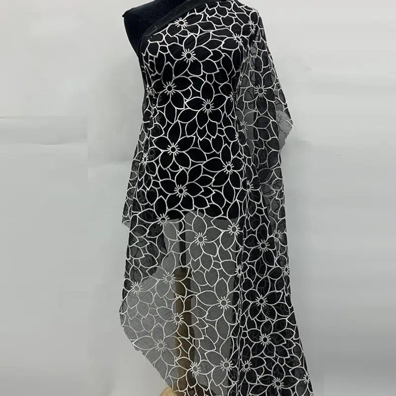 Hot Sale Black Floral Embroidered Mesh Lightweight Lace Fabric.