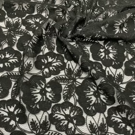 Hot Sale Black Floral Embroidered Mesh Lightweight Lace Fabric.