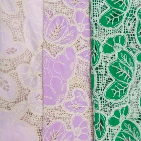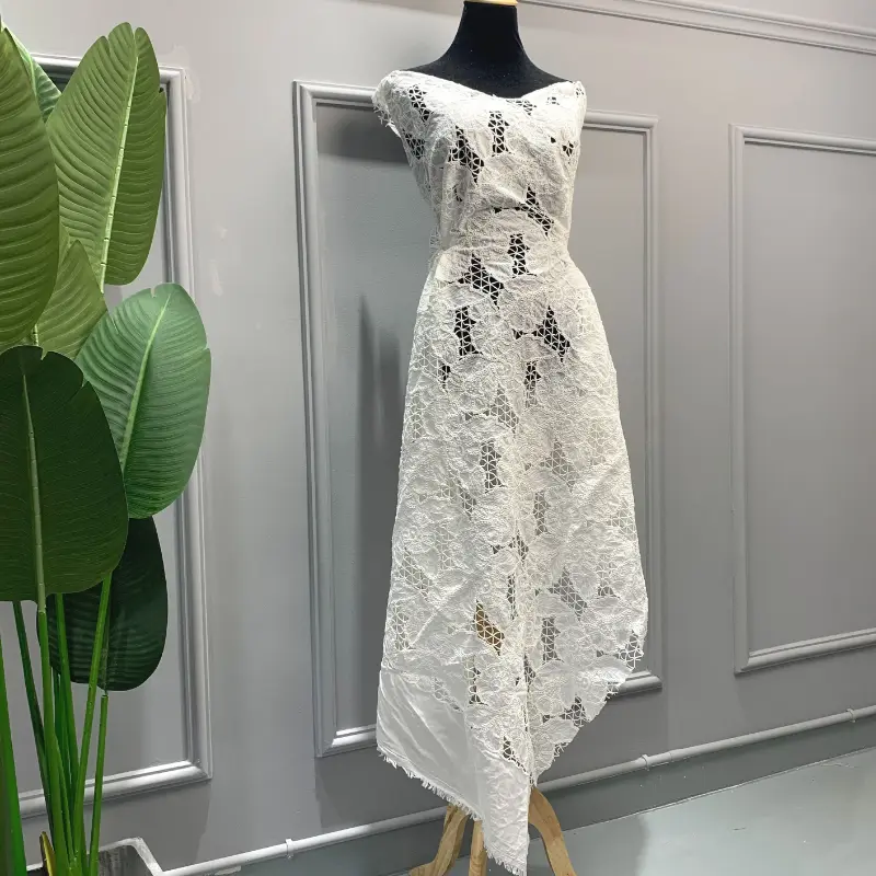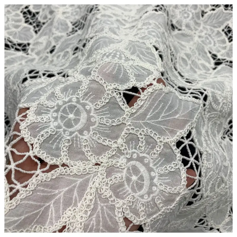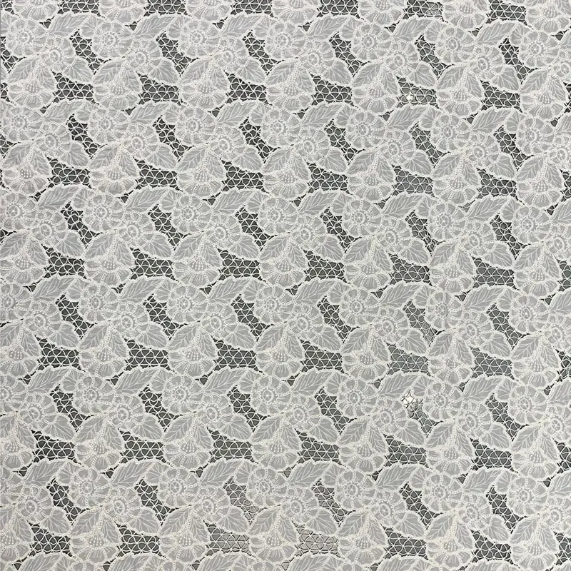 Hot Selling China Factory Direct Price Lace Cord Fabric Ivory White Floral Laser Cut Cord Embroidery Lace Fabric.