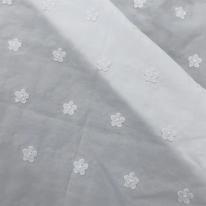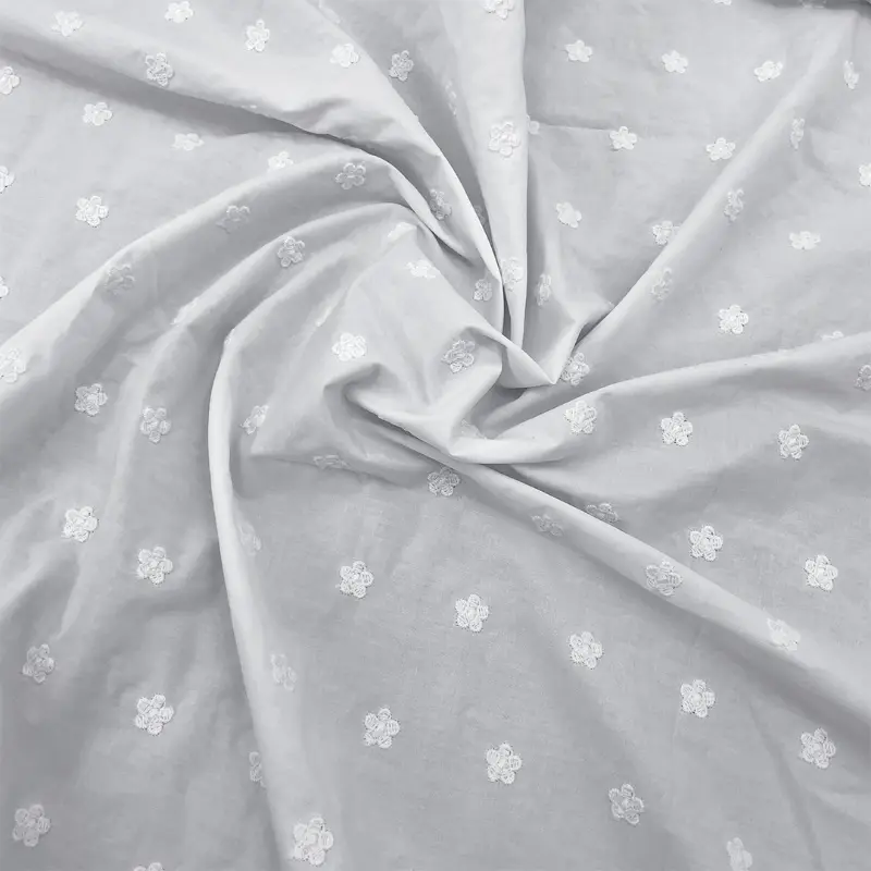 This all-over floral embroidered cotton fabric features delicate small flower motifs evenly spaced across the surface, adding a charming and refined texture. Available in a range of colors, this fabric is versatile and easy to coordinate across collections.
