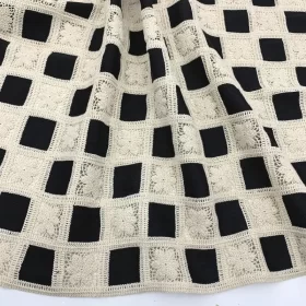 This new embroidered fabric features a charming daisy-inspired floral motif, crafted with meticulous cord embroidery in a structured square grid. The pattern blends classic symmetry with a hand-crafted appearance, making it ideal for creating standout pieces with a vintage-modern aesthetic.