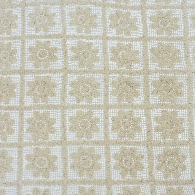 100%Cotton Natural Color Geometric Corded Guipure Lace Fabric.
